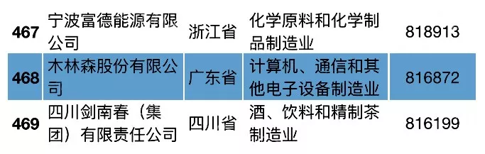 木林森股份有限公司以营收总额81.6872亿元列“2018中国民营企业制造业500强”第468名。