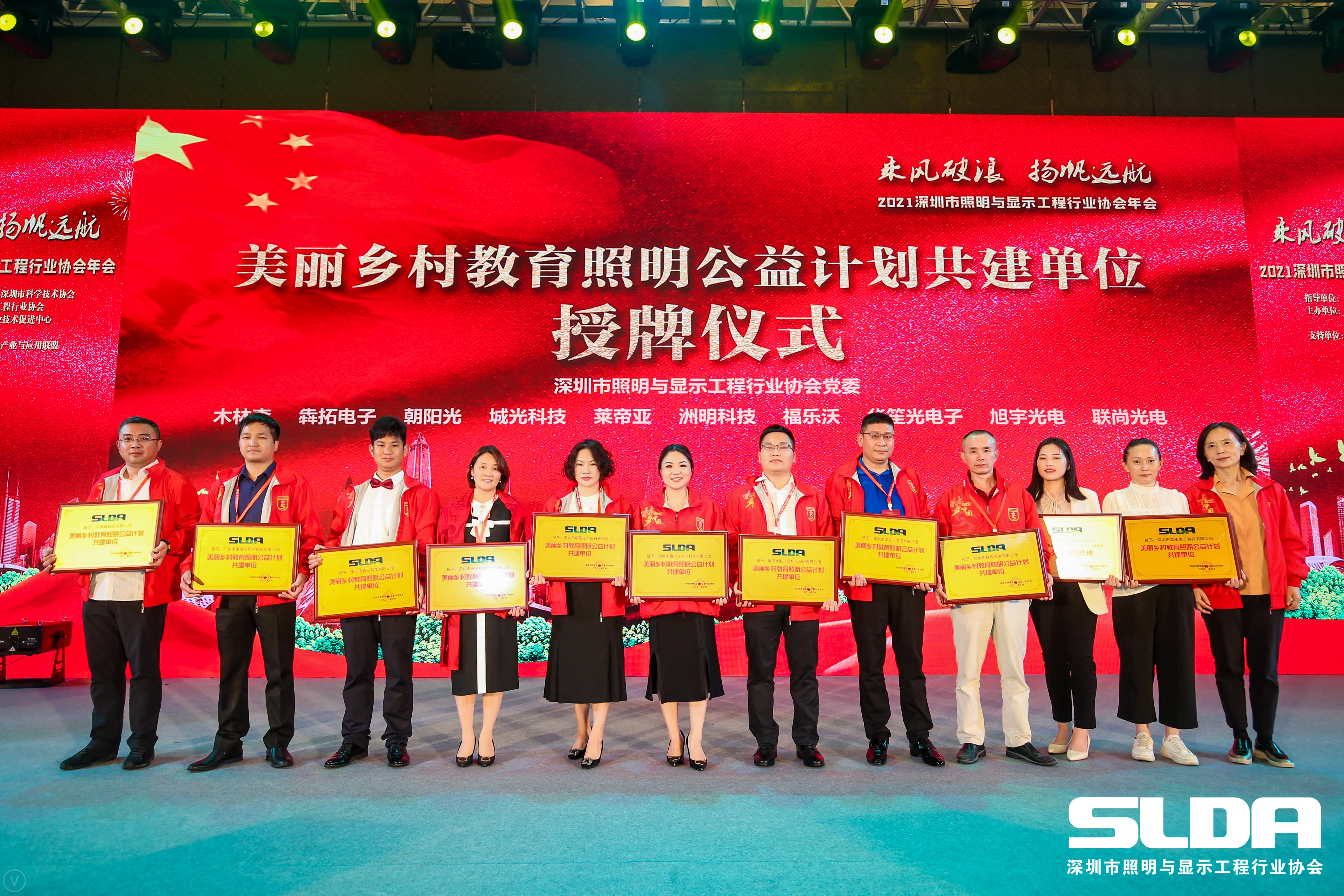 2021年3月19日,以“乘风破浪·扬帆远航”为主题的2021深圳市照明与显示工程行业协会(SLDA)年会在深圳举行。十三五期间,协会发起光爱100贫困学生帮扶公益计划,60多位企业家捐赠学生100余名,为打赢脱贫攻坚战贡献力量。十四五协会将组织企业投身美丽乡村建设工作,实现50-100间乡村地区教室LED照明工程进行改造,保护学童视力健康。木林森参与了第一期美丽乡村教育照明公益行,这次行动将对广东陆丰和贵州毕节的2所小学12间教室照明进行更换。