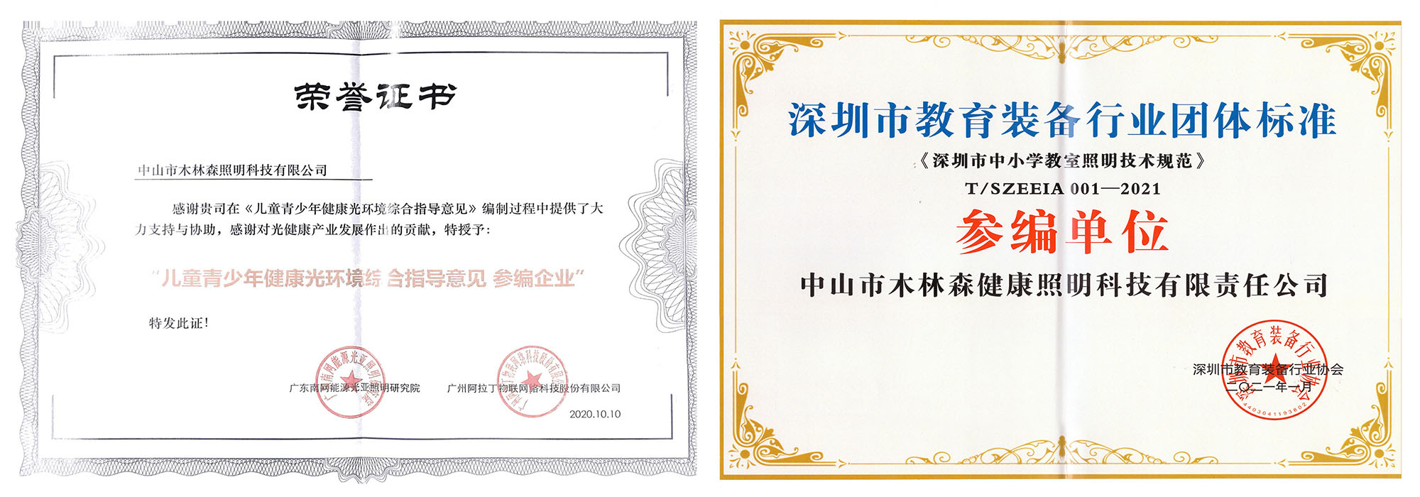 同时,为促进企业发展,木林森健康照明科技有限责任公司今年也加入了深圳教育装备行业协会,广东教育装备协会,中国教育装备协会等协会,并荣获《深圳市教育装备行业团体标准》及《儿童青少年健康光环境综合指导意见》参编企业。