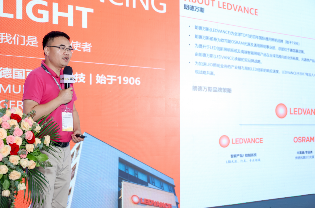 在分享环节中,朗德万斯受邀出席分享行业经验,朗德万斯中国产品总监田波代表公司进行了以“打造全新照明平台体系”为主题的演讲: